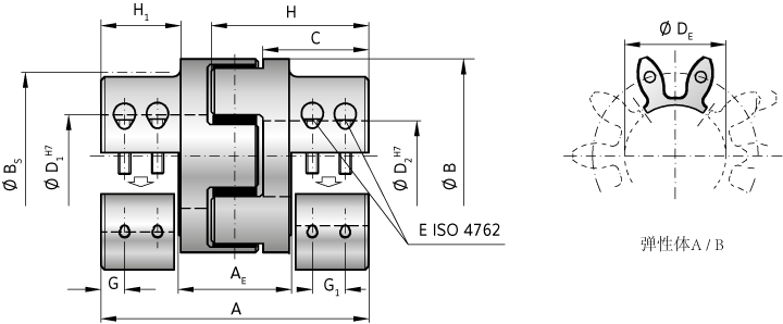 · 帶分離式夾緊套環和套環每側有兩個側面螺釘ISO4762。