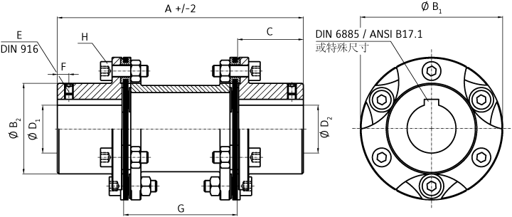 · 兩個高精密制造的聯(lián)軸器套筒和間隔套筒夾緊裝置,通過襯套和高強(qiáng)度螺釘與摩擦片組相連接。