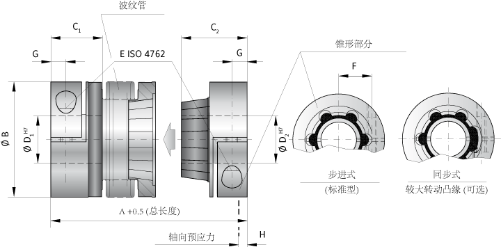 金屬波紋管聯(lián)軸器的特殊解決方案:如其他配合長度,鍵槽,特殊材料和波紋管可根據(jù)要求短時提供。