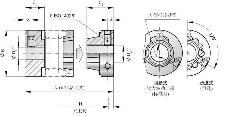 標準配置:用夾緊套環和一個側面螺釘ISO4762。