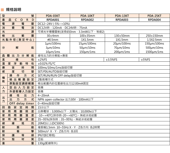 ● 高精度分解能如PDA-03KT可達(dá)1μm
